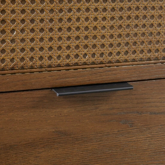 Add extra storage and charming style to your living room with the Madison Park Allen Accent Chest. This accent chest features 3 large drawers accented with double metal handles provide ample storage space for your home essentials. The top drawer showcases a cane decoration that adds dimension and texture to complement the casual design, while solid wood legs offer a steady and supportive base. Leg assembly is required and tools are included.ย