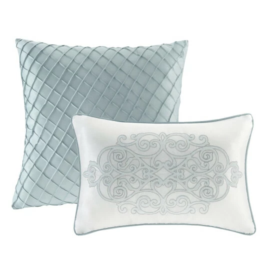 The Madison Park Anouk 12 Piece Bedding Collection provides a rich update to your master bedroom. Its jacquard woven fabrication has a three dimensional affect giving this decorative design life. Three decorative pillows with embroidery and fabric manipulation details work with the two euro shams for a completely new look for your bedroom. A 100-percent cotton sheet set including two standard pillowcases, flat sheet and fitted sheet are also included in this set.