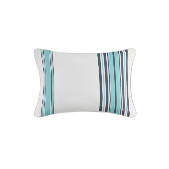 Style your outdoor space with our cool stripe Madison Park Bolinas 3M Scotchgard pillow. Colorful hue stripes add a colorful update, while weather resistant and long lasting protection provide durability for the whole season. 3M Scotchgard treatment helps repel moisture, resist staining, and provide a durable water barrier that keeps fabric drier longer. Features 100-percent polyester filling for simple comfort; Machine washable cold, gently remove zippered cover for easy care. Complete the collection with coordinating panel, cushion, and pouf sold separately. Pattern stripe may vary per each item due to the nature of the design.