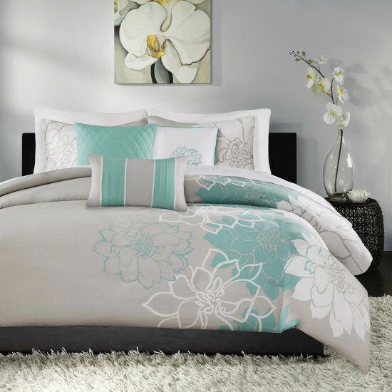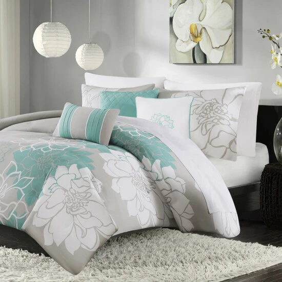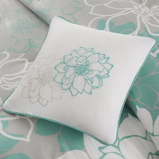 The Madison Park Brianna 6 Piece Printed Duvet Cover Set brings beauty and grace to your bedroom. A large scale printed floral motif is displayed on the cotton duvet cover and shams, for a chic transitional look. Three decorative pillows with embroidered details and fabric manipulation add dimension to the top of the bed. A button closure secures a comforter insert within the duvet cover and inside corner ties prevent it from shifting (insert is NOT included). This bedding set is also OEKO-TEX certified, meaning it does not contain any harmful substances or chemicals to ensure quality comfort and wellness.