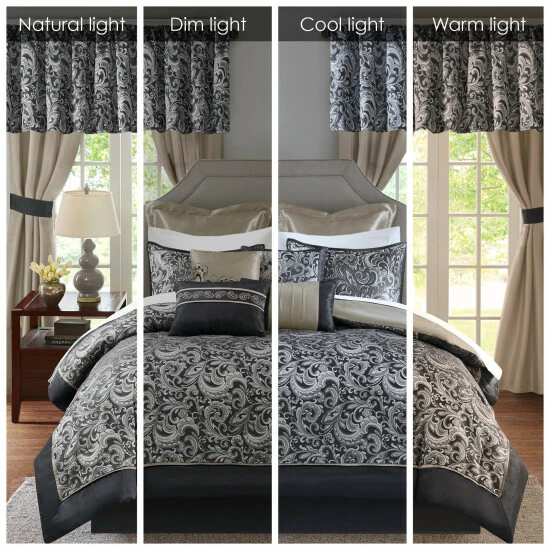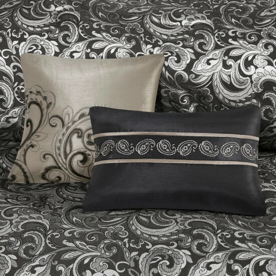Festoon your bedroom in one step with the marvelous, graceful majesty of Madison Park Cadence 24-piece Room in a Bag comforter set. The plush polyester is effortlessly elegant and easy to care for for years of use. Pleating and embroidery embellish the paisley pattern for a lovely not to traditional designs that is sure to present a favorite element.ย