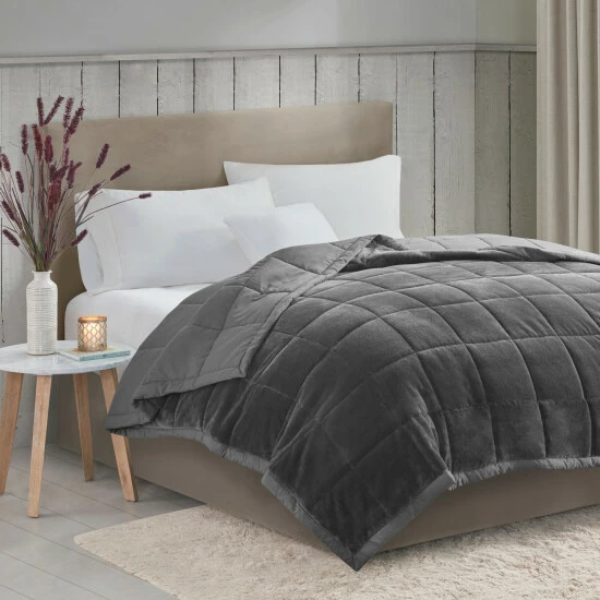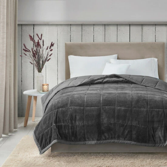 - Reversible plush to solid microfiber down alternative blanket