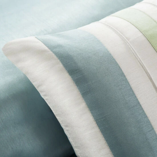 Bring a bedroom up to date with this contemporary comforter set, boasting a versatile reversible design and a sweet striped pattern in calming blue and green. The included shams and bedskirt contribute to a thought-out, put-together look, while the microfiber construction is conveniently soft, durable, and machine washable.