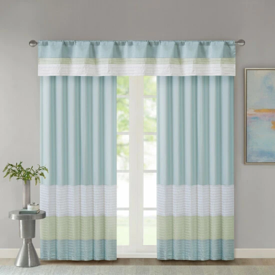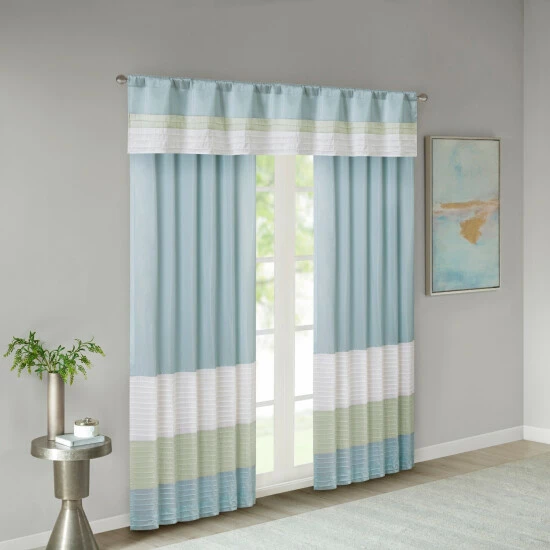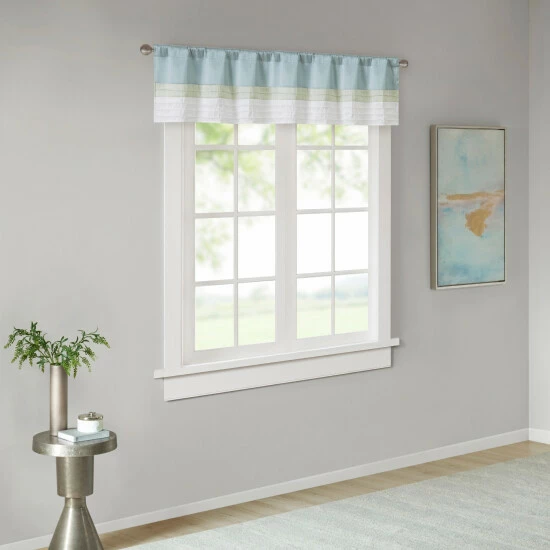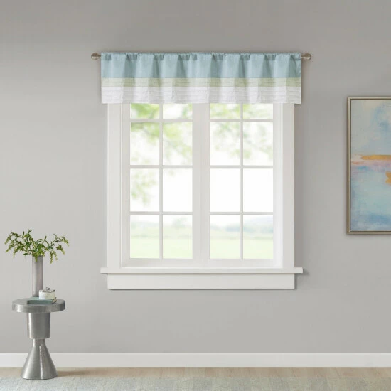 Grace your window with light, airy color with this charming window valance. Simple colors and pin tuck detailing lend elegance and interest to your space, giving your window polish and tying in with your decor.ย