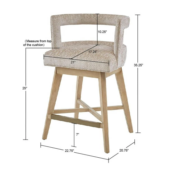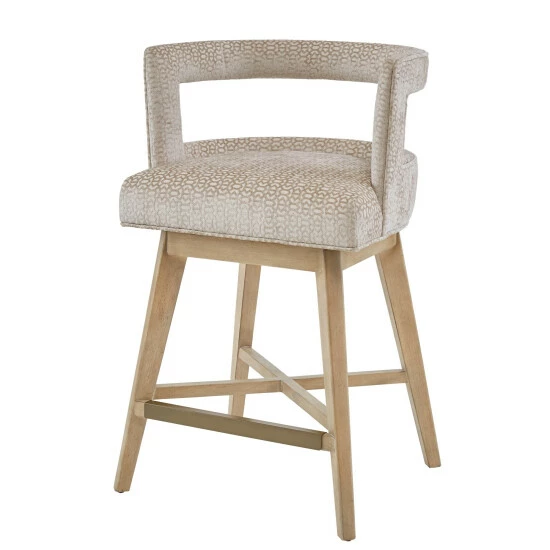 Update your kitchen dining decor with the Madison Park Crimson Swivel Counter Stool. This counter stool features a low open back and is upholstered for a charming contemporary look. The solid wood legs complement the upholstery with the wheat color finish, while a bronze metal kick plate helps protect against every-day wear and tear. Able to rotate 180 degrees, this swivel counter stool brings a modern touch to your dining space. Assembly is required.ย