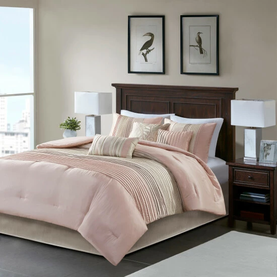 - Transitional style 7 piece comforter set in pintucking and embroidery details