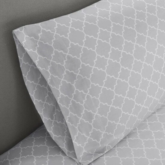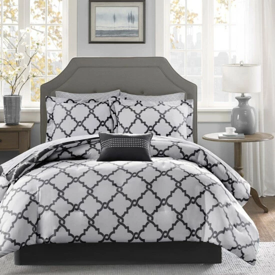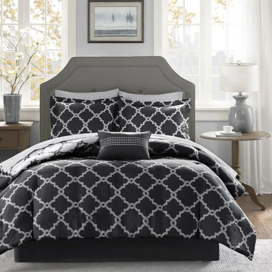 - Reversible contemporary all over fretwork design printed comforter set and cotton sheet set