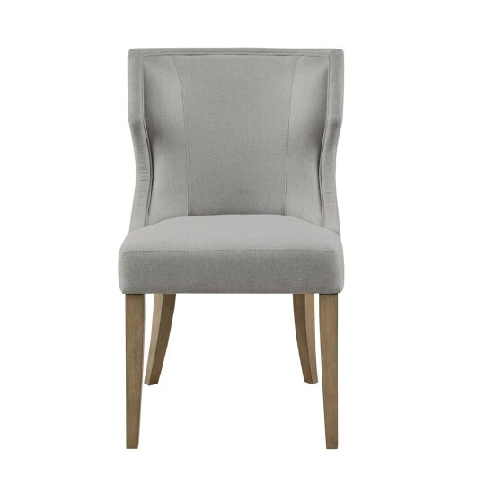 Define your dining area with the elegance of the Madison Park Fillmore Dining Chair. This pholstered wingback style dining chair features clean lines and curve, for a sophisticated silhouette. The straight rubber wood legs feature a smooth reclaimed grey wood finishes that complements the upholstery to create a beautiful transitional look in your dining room. Assembly is required. Max weight capacity: 300 lbs.