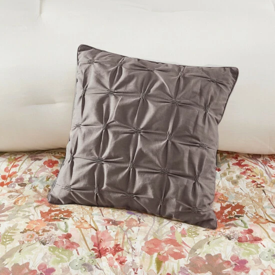 The Madison Park Fiona 7 Piece Cotton Printed Comforter Set brings a touch of beauty to your bedroom decor. This cotton comforter features a watercolor floral print that runs from the middle of the bed to the foot, for a beautiful transitional look. Two coordinating shams pair perfectly with the comforter, while three decorative pillows with embroidery and tufted details provide rich textural accents to the bed. A solid bed skirt adds the finishing touch to complete the cotton comforter set. Machine washable for easy care, this bedding set is also OEKO-TEX certified, meaning it does not contain any harmful substances or chemicals to ensure quality comfort and wellness.