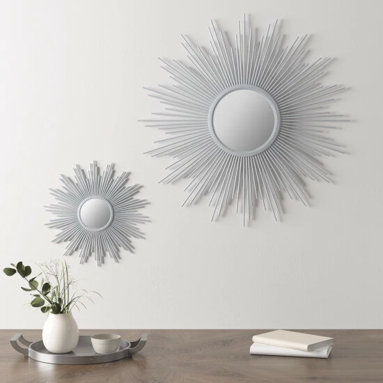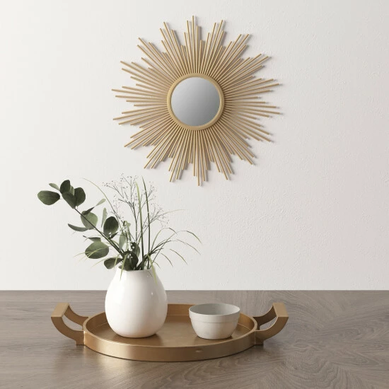 - Round Burst Metal Glass and Iron Wall Decor Mirror