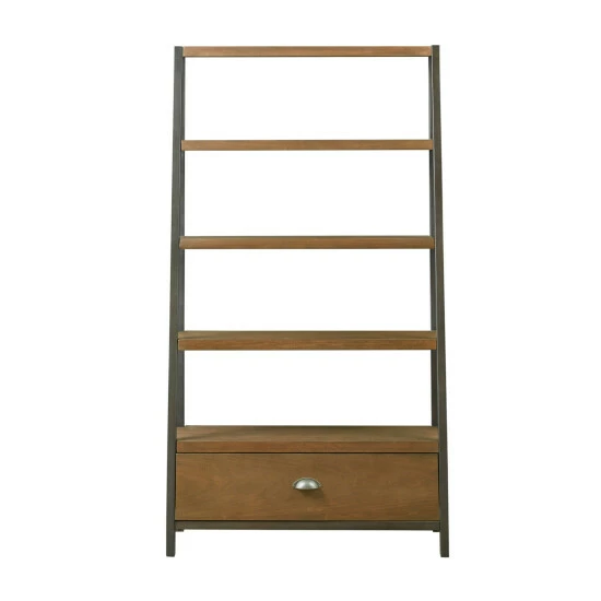 The Madison Park Fort Bookcase offers a perfect update to complete your home decor. This bookcase showcases a ladder style design with an elm wood finish and a bronze-hued metal frame to create a chic industrial look. Three wood veneer shelves and a single drawer provide plenty of space to display your pictures and other decorative objects. Incorporate this bookcase into your home office or living room to update your space with style and functionality. Assembly required and tools included.