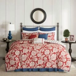 - Traditional 9 piece floral design cotton twill reversible comforter set
