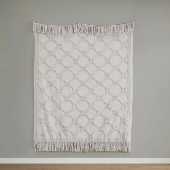Add a cozy farmhouse touch to your home with the Madison Park Hannah Cotton Tufted Throw. This cotton throw flaunts a tufted geometric pattern with a 4-inch fringe on each end that adds texture and dimension, for a charming country allure. The 100-percent cotton fabric creates a lightweight and natural feel, making this cottage throw perfect for all seasons. Machine washable for easy care, this cotton tufted throw is great as a layering piece across your bed or can be hung like a tapestry for a chic accent on your wall.