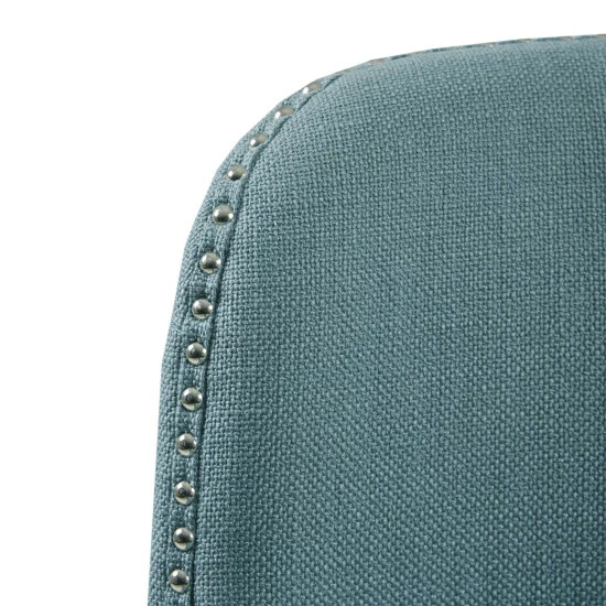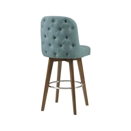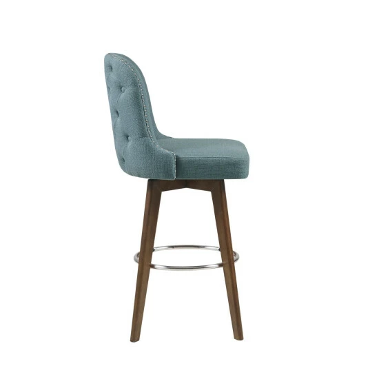 Add a fresh splash of color and style to your dining area with the Madison Park Heyes Bar Stool with Swivel Seat. The tight tufted back and seat are upholstered in a polyester and acrylic fabric that coordinates beautifully with the walnut wood finish on the straight legs. An attached seat cushion provides exceptional comfort and features a swivel function that rotates 360 degrees. The polished silver nail head trim and polished silver finish on the footrest adds an elegant accent to the design, completing the look. Incorporate this counter stool into your dining room or kitchen decor to brighten your home. Assembly is required. Max weight capacity: 300 lbs.