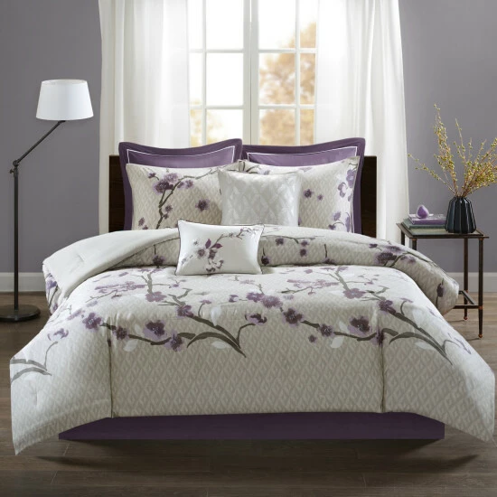 The Madison Park Isabella 8 Piece Comforter Set will add charm and elegance to your bedroom decor. A lovely floral print is showcased on the comforter and shams, for a graceful transitional look. The two Euro shams and solid bed skirt provide a splash of color, while two decorative pillows add the finishing touches. This bedding set is also OEKO-TEX certified, meaning it does not contain any harmful substances or chemicals to ensure quality comfort and wellness.