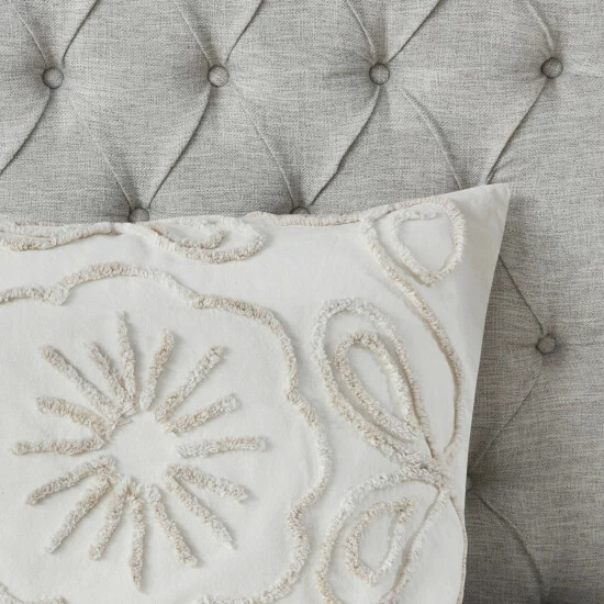 The Madison Park Juliana 3 Piece Tufted Cotton Chenille Comforter Set offers a globally inspired update to brighten your bedroom decor. A large tufted chenille medallion is displayed in the center of the comforter, creating an elegant textural look. Matching shams mirror the beautiful design on the comforter to complete the cotton bedding set. This bedding set is OEKO-TEX certified, meaning it does not contain any harmful substances or chemicals to ensure quality comfort and wellness. Due to the nature of the chenille fabric, some shedding will occur naturally in the first 3-4 washes.
