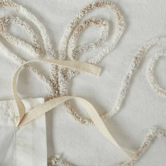 The Madison Park Juliana 3 Piece Tufted Cotton Duvet Cover Set offers an elegant and charming update to brighten your bedroom decor. An ivory and taupe medallion design, made with tufted chenille, creates a textural globally inspired look. Matching shams mirror the beautiful design on the duvet cover to complete the cotton bedding set. Made from 100-percent cotton chenille on the face and reverse, this duvet cover set offers a gorgeous combination of style and comfort to elevate your bedroom decor. A button closure helps secure a comforter insert within the duvet cover and inside ties in the corners help prevent it from shifting (insert is NOT included). Due to the nature of the chenille fabric, some shedding will occur naturally in the first 3-4 washes.