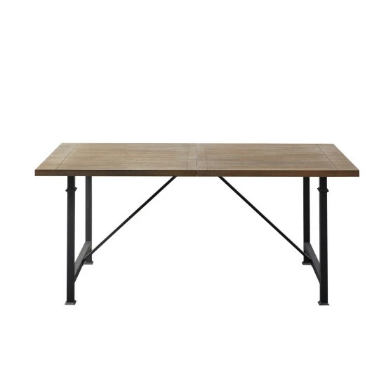 The alluring design of this dining table is defined in its rustic reclaimed finish. With its generous 72-inch length and durable metal frame, you are sure to make a great addition to your dining area. Assembly required.