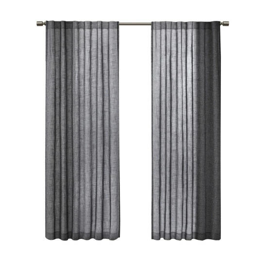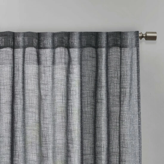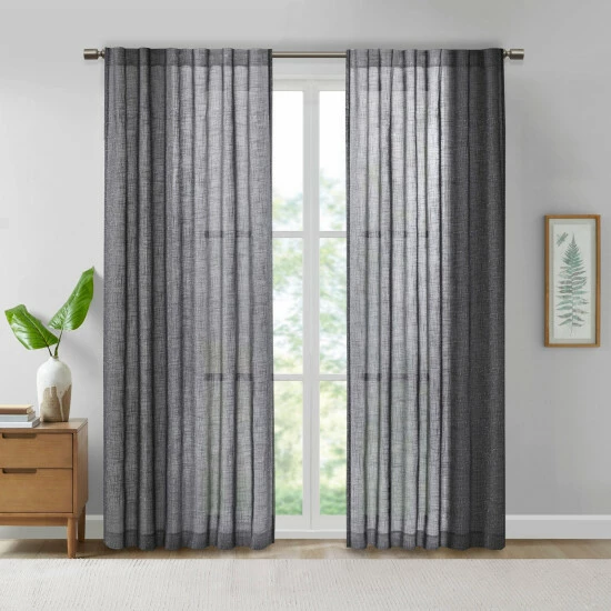Add a simple and stylish update to your decor with our Madison Park Kyler Texture Printed Woven Faux Linen Window Panel. This window panel features a soft heathered pattern in a colorful hue for a casual and modern look, while the light woven faux linen fabric adds a naturally, fresh and airy touch. This window panel is also OEKO-TEX certified, meaning it does not contain any harmful substances or chemicals to ensure quality comfort and wellness. Simply hang this curtain with its rod pocket top or back tabs for a more tailored look; Fits up to a 1.25 inches diameter standard size rod. Machine washable for easy care, this faux linen window panel is the perfect addition for creating a soft light filtering ambiance to any room or home. As shown in the image, 2 of these curtains will need to be purchased for coverage to any standard size window.