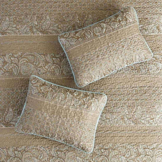 - Luxurious and traditional style reversible jacquard 3 piece coverlet set