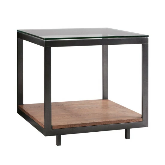 Create an elegant spot to keep your favorite books handy with the Leo end table from Madison Park. This handsome end table sports an iron and wood construction to offer equal helpings of sturdiness and rustic good looks. The thick tempered glass top provides a sleek surface for displaying memorabilia and knickknacks.