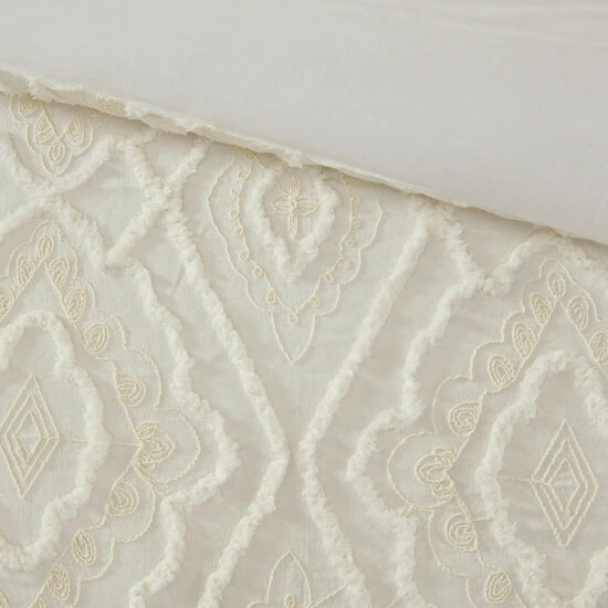 - Shabby chic style cotton comforter set with chenille and embroidery details