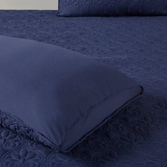 The Madison Park Mansfield 3 Piece Fitted Bedspread Set offers a charming cottage-inspired update to your bedroom. The split-corner bedspread and shams (1 in Twin/TwinXL) flaunt a classic stitch pattern that creates a rich depth and texture on the face of the bedding set. All-over quilted box sewing keeps the filling secure, while the 24-inch drop sides create a clean draped look. This bedspread also has an antimicrobial treatment that provides built-in freshness protection, reducing the growth of odor causing bacteria to keep fabric lasting longer.
