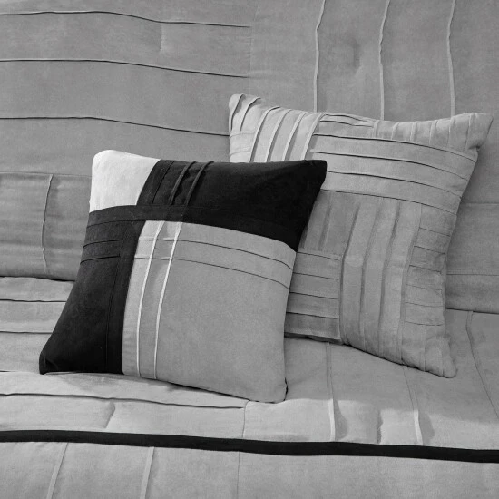 Merge comfort and style with this seven-piece comforter set, which is made with a high-quality polyester microsuede for lasting durability. The decorative pillows add visual appeal as well as support for sitting up and reading in bed. Pintucks and stripes give this comforter set a contemporary look.