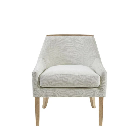 Complete your home decor with the chic style of the Madison Park Milana Accent Chair. This accent chair is upholstered in a geometric jacquard fabric that creates a stunning transitional look with a soft hand-feel. The low back and recessed arms provide an elegant silhouette, while the exposed wood at the top complements the design. Solid wood legs match the exposed wood on the back and provide a sturdy base. Add this accent chair to your living room decor and elevate the look of your space. Leg assembly required and tools are included.