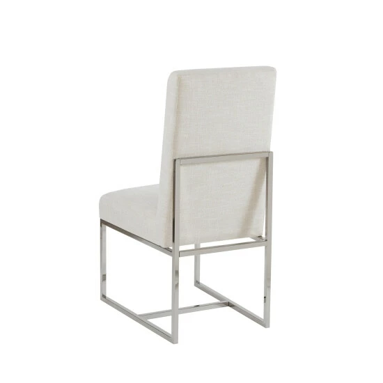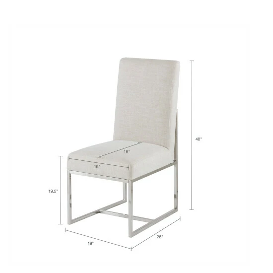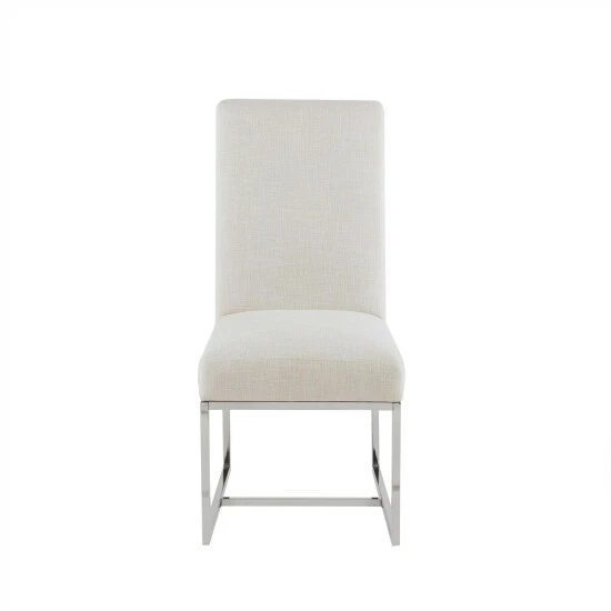 Give your dining room a simple and modern look with the Madison Park Miyu Dining Chair 2 Piece Set. Upholstered in a soft natural-hued fabric, these dining chairs feature a brushed nickel plated finish on the metal legs to create a rich contemporary allure. Available in a two piece set, these modern dining chairs introduce a simple elegance to your dining decor. Assembly is required and tools are included for your convenience.