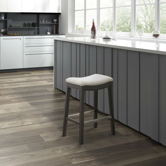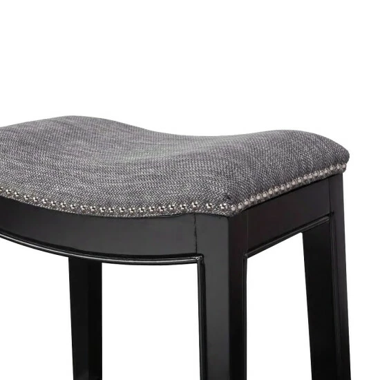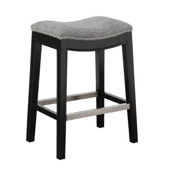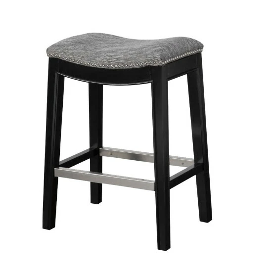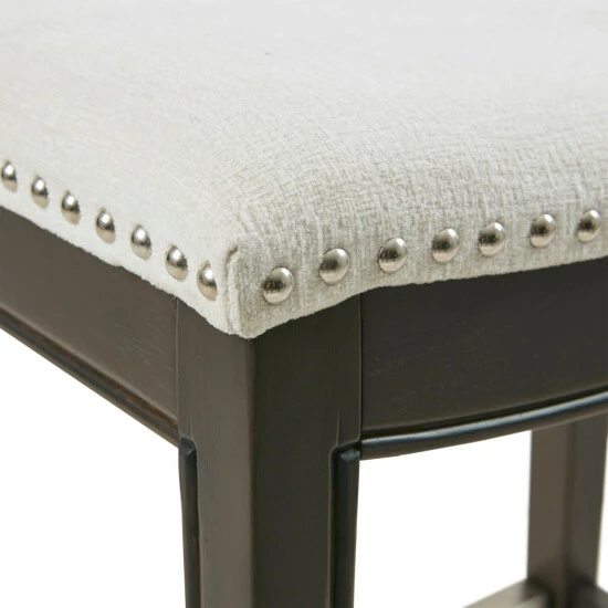 Complete your kitchen dining space with the sophisticated Madison Park Nomad 27.36 inches Counter Stool. This counter stool features an upholstered seat and a solid wood frame to create a stunning contemporary look. A pewter nail head trim around the edge of the upholstery adds an elegant accent, while a metal kickplate on the stretchers protect against every day wear and tear. Flaunting a simple and clean design, this modern counter stool brings an elevate style to your decor. Assembly is required and tools are included.ย