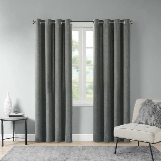 Dress your windows in practical style using this Madison Park Oslow grommet-top window panel. Made of machine-washable polyester for easy upkeep, this panel filters light, helping to reduce glare and maintain privacy. The panel comes in several textured neutral solid hues for easy integration into your decor scheme. The lightweight panel comes with antique silvertone top grommets that slide back and forth easily on rods up to 1.25 inches in diameter, making it easy to install and reposition throughout the day.