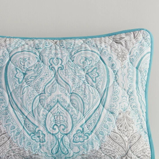 The Madison Park Peggy 3 piece Reversible Cotton Coverlet Set offers fresh boho style update to your bedroom decor. This cotton coverlet features a repeating medallion design on the face with a teal reverse, for a charming shabby chic look. The 2 matching shams reiterate the pattern of the reversible coverlet to complete the transitional coverlet set. Machine washable for easy care, this reversible cotton coverlet is OEKO-TEX certified, meaning it does not contain any harmful substances or chemicals to ensure quality comfort and wellness. It also has an antimicrobial treatment that provides built-in freshness protection, inhibits growth of odor causing bacteria, and keeps the fabric newer, longer.ย