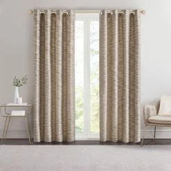 Provide privacy in your living room while filtering light with this classic yarn-dyed texture curtain panel. Featuring a smooth-gliding grommet top that provides easy installation and a crisp, clean hang, this classic machine-washable polyester curtain panel looks especially great with contemporary and mid-century decor.