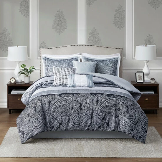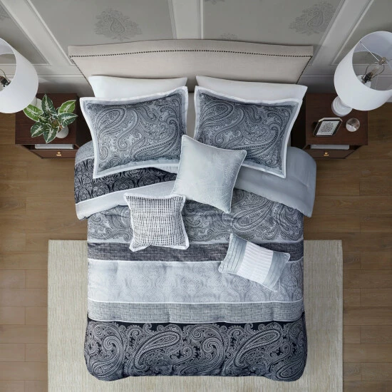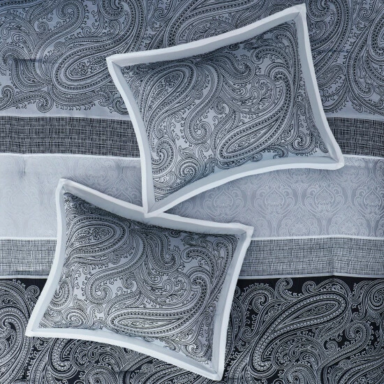 - Paisley and damask design in jacquard woven fabric on comforter in black and white, black and gray, white and gray colors