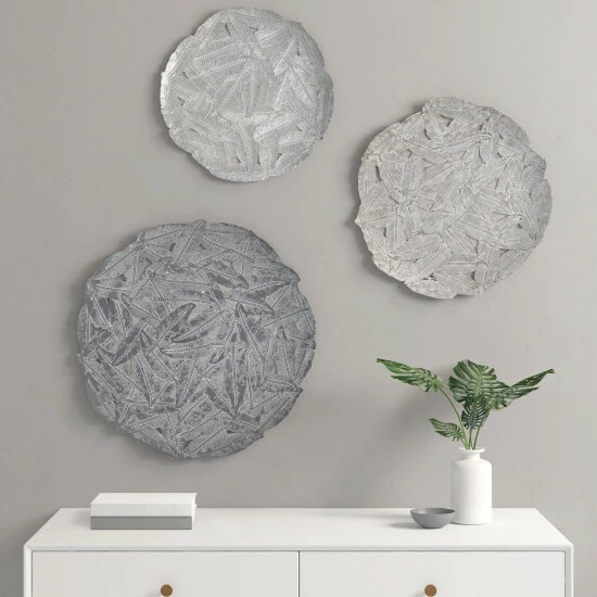- Feather cutout design featured on 3 different sized round discs