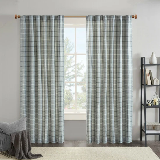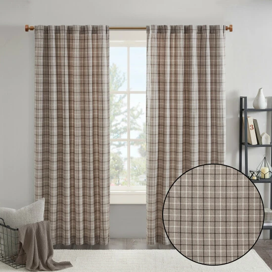 - Rod pocket and back tab yarn dyed plaid weave window curtain panels