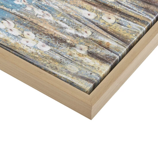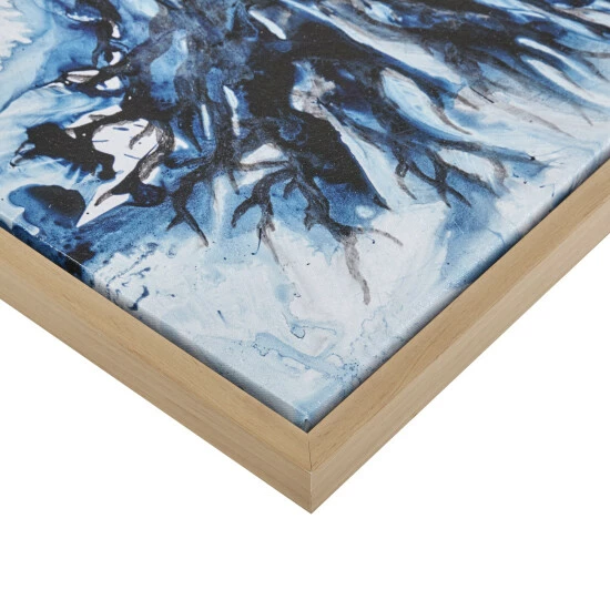 The Madison Park Seascape Gel Coat Framed Canvas 4 Piece Set offers a relaxing addition to your coastal-themed decor. This canvas set features a collaboration between 4 artists, Delsie Walters, Megan Swartz, Connor Adams, and Matina Theodosiou, to create a beautiful coastal art set of oceanic scenes, coastal animals, and abstract designs in blue and natural hues. The natural color wood frames gives each piece a natural update, while the gel coating adds texture and a glossy finish while also preventing the colors from fading over time. Comes as 4 piece set in varying sizes; hang this coastal wall art set together for a large focus piece or separately to fit any space and create a calming aesthetic in your home.ย