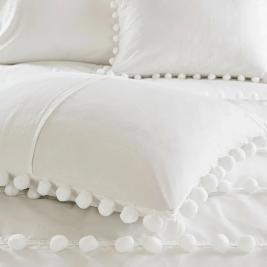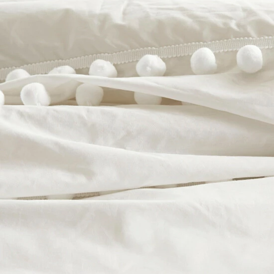 - Casual chic style 3 piece cotton pom pom duvet cover set
