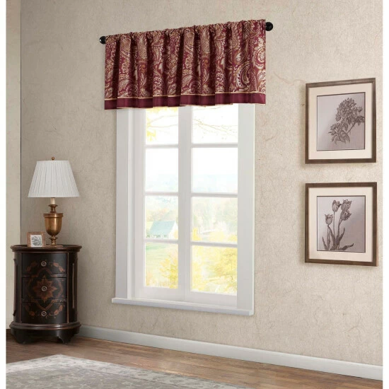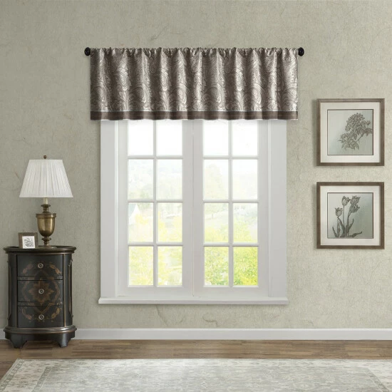 For a luxuriously classic style, our Madison Park Aubrey Window Valance is the perfect touch to your decor. The alluring jacquard weave is inspired from an updated paisley motif and is woven in beautiful color combination with a hint of shimmering accent. The window valance are pieced with solid faux silk and beautiful flat piping details in gold, creating an elegant look. While also achieving the OEKO-TEX certification, meaning it does not contain any harmful substances or chemicals, ensuring quality comfort and wellness. Simply hang on rod pocket; while fitting up to a standard 1.25 inches diameter rod. Coordinating window panels, bedding is also available and sold separately.