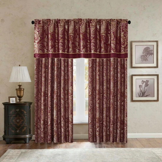 - Paisley jacquard weave design curtains finish with pieced border detailing