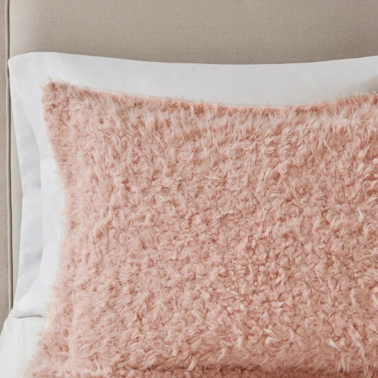The Madison Park Zoe Comforter Set offers a luxurious soft touch to glamorize your bedroom decor. This comforter set features a faux fur face and a faux mink reverse in a blush hue for an ultra-soft look and feel. Matching sham(s) coordinate with the warm comforter to create a chic and cozy appeal, while end-to-end box quilting prevents the filling from shifting. Feel the cozy warmth the moment you tuck yourself in with this faux fur comforter set. Set includes: 1 comforter and 2 shams (1 sham for twin sizes). Items in the set may come in a rolled or compressed packaging, which will need to be fluffed up or steam ironed before use to remove wrinkles.