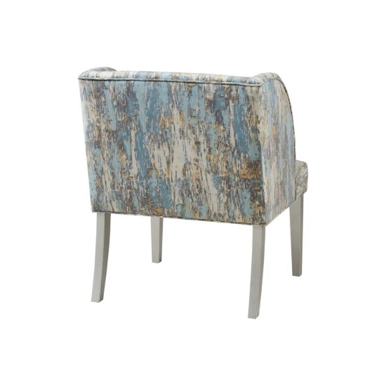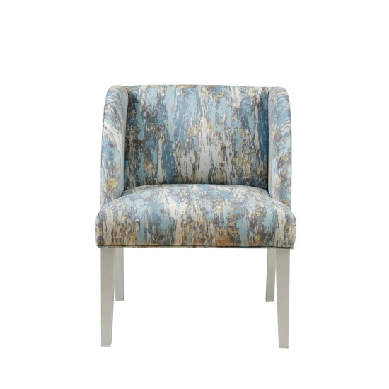 The Madison Park Zuma Accent Chair offers a charming and versatile update to your living room. This lounge chair is upholstered in a blue and grey abstract print fabric with a silver finish on the solid wood legs, for a chic transitional look. The flared arms and distinct back style create a uniquely elegant silhouette that complements and elevates your home decor. Leg assembly is required.ย