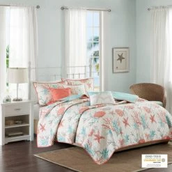 Coupon ๐ Madison Park Pacific 6 Piece Grove Cotton Sateen Quilted Coverlet Set Coral โ๏ธ